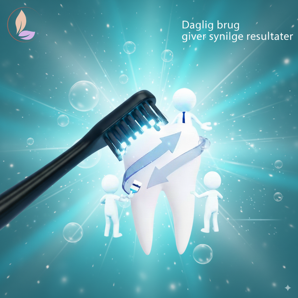 En avanceret LED elektrisk tandbørste, der både renser og bleger dine tænder på samme tid – skånsom, effektiv og perfekt til daglig brug hjemme.